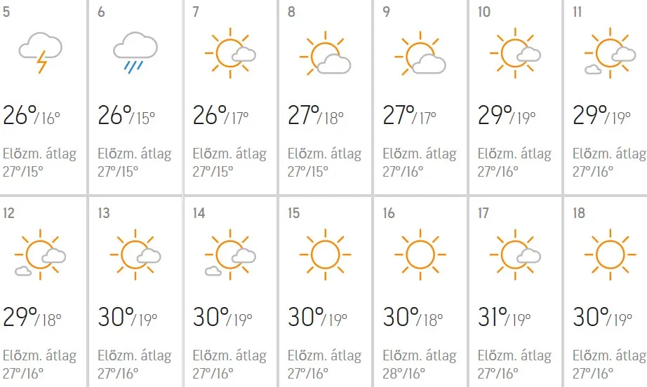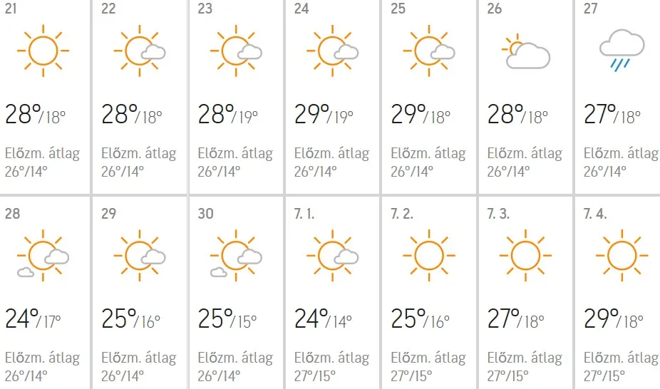 Ha pedig mindez még nem lenne elég: júliusra már egyenesen kánikulával érdemes számolnod. Tehát kitartás, mindössze néhány esős és viharos napot kell már csak túlvészelned ahhoz, hogy előkapd a napszemüveged, és kiélvezd a nyár örömeit.