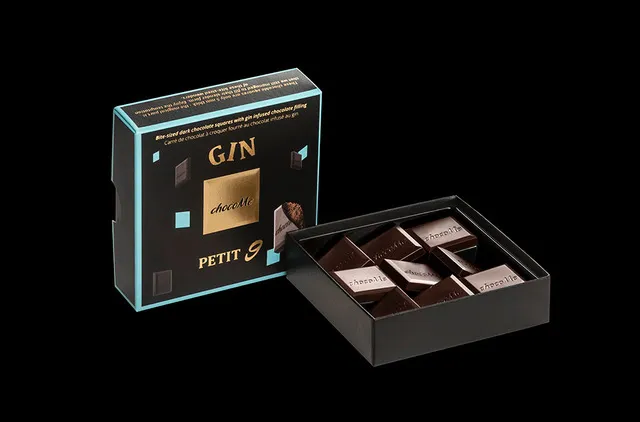 A leírás szerint falatnyi étcsokoládé lapocskákról van szó, gin ízesítésű csoki töltelékkel. Egy kicsit bővebben: maga a csokilap egy francia étcsokoládé burok, mely selymes, csokoládé-alapú, ginnel ízesített tölteléket rejt. Az izgalmat fokozza, hogy a gin alapanyagául szolgáló borókabogyó erős hangsúlyt kap a töltelékben, valamint – a frissesség jegyében – leheletnyi egzotikus kaffir lime is bekavar a képbe. Valami zseniális, ahogy a két-három, egymástól nagyon távoli ízvilág összesimul ebben a csokicsodában...