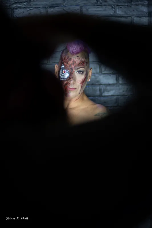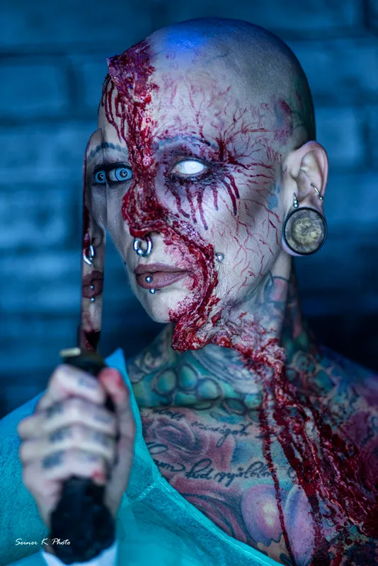 Művér minden mennyiségben, fekete színek, hátborzongató kontaktlencse – a Fészek Fotó Stúdió workshopján nem vicceltek a sminkesek, olyan élethű és véres arcokat készítettek, hogy bármelyik horrorfilmben elmehetnének. Az biztos, hogy a félelmetes sminkektől bárki szívbajt kapna, ha szembejönne vele a modell az utcán – de egyelőre csak egy fotózás erejéig készültek el a brutálisan élethű sminkek.