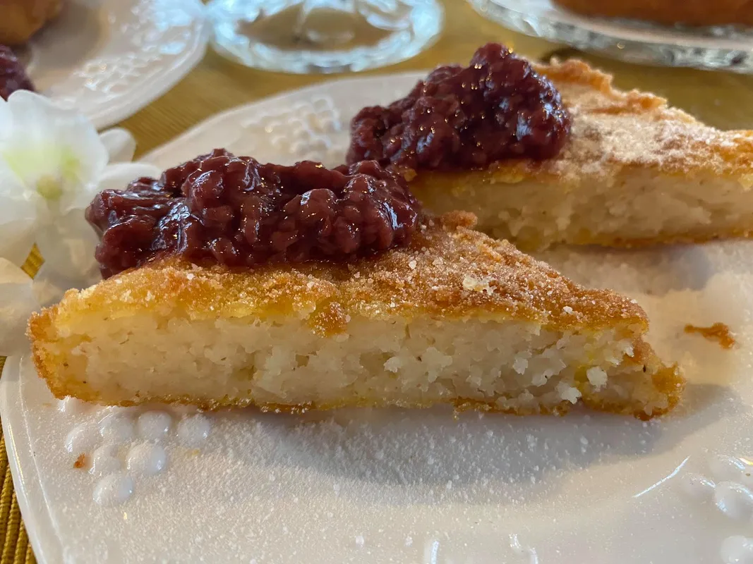 4. A sütőpapír segítségével emeljük ki a tepsiből megdermedt tejbegrízt és borítsuk egy deszkára. Szeleteljük fel. Vigyázzunk, eléggé ragad, érdemes a kést néha bevizezni.
