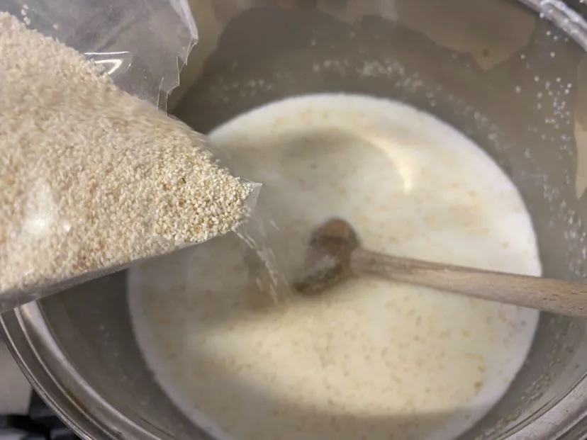 2. Akkor jó a kirántani való tejbegríz, amikor már megáll benne a kanál. Érdemes ekkor beletenni a cukrokat, így kisebb eséllyel ég le főzés közben.