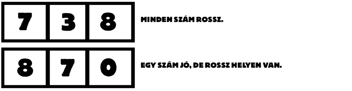 Eléggé bosszantó, hogy az ember képtelen élből rávágni a helyes megoldást. Az első találgatások során valahogy mindig az derül ki, hogy az adott számkombináció ezért vagy azért nem stimmel.
