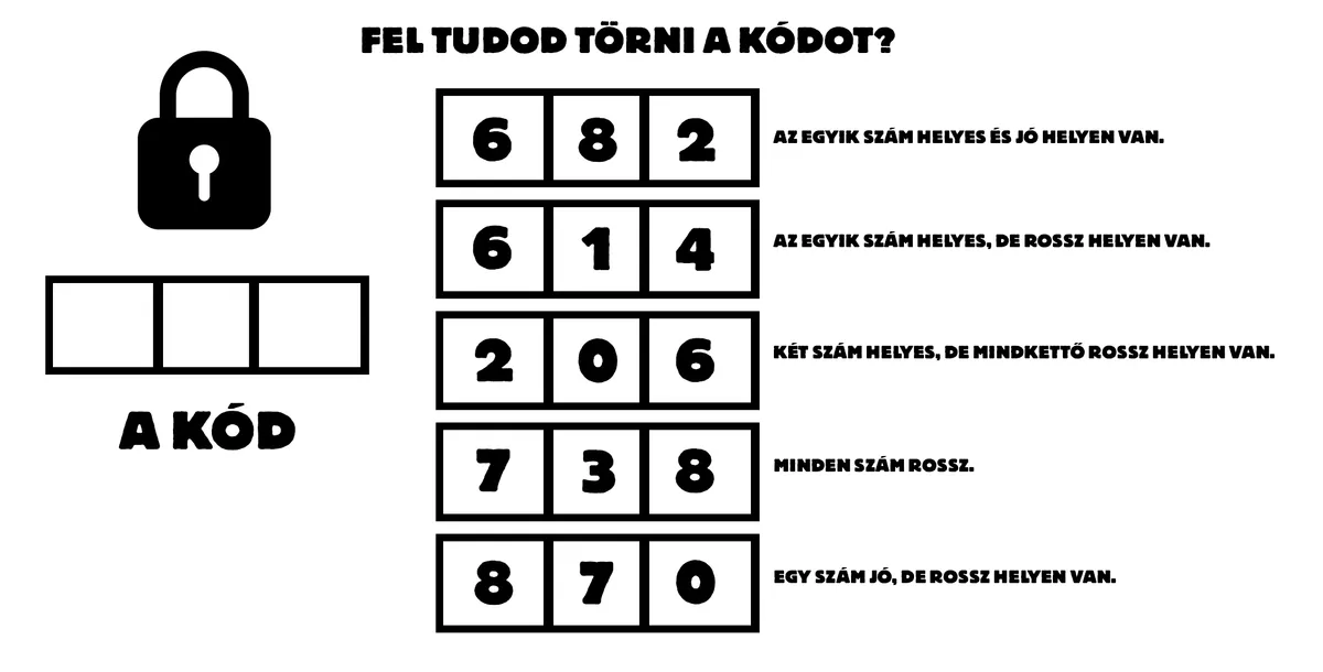 A faladat egyszerű: be kell jutni a számzáras lakattal védett helyre. Néhány előírás megszabja a számok helyét. Vajon neked sikerül feltörni ezt a kódot?