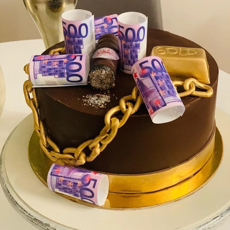 Egy feltörekvő, 20 éves fiatalember kapta születésnapjára ezt a tortát. „Nagy tervei vannak, de egyelőre még álomvilágban él. Nem baj, mert majd felébred, ha beleér a keze a bilibe” – így adta át a megrendelést a megbízó Bardi Dávidnak. A maffiózó hangulatú torta belsejében habkönnyű piskótalapok közé rétegzett belga csokoládékrém került. A díszítésként használt nagy címletű papírpénz ehető cukorfondant, akárcsak az aranytömb és a szivar.