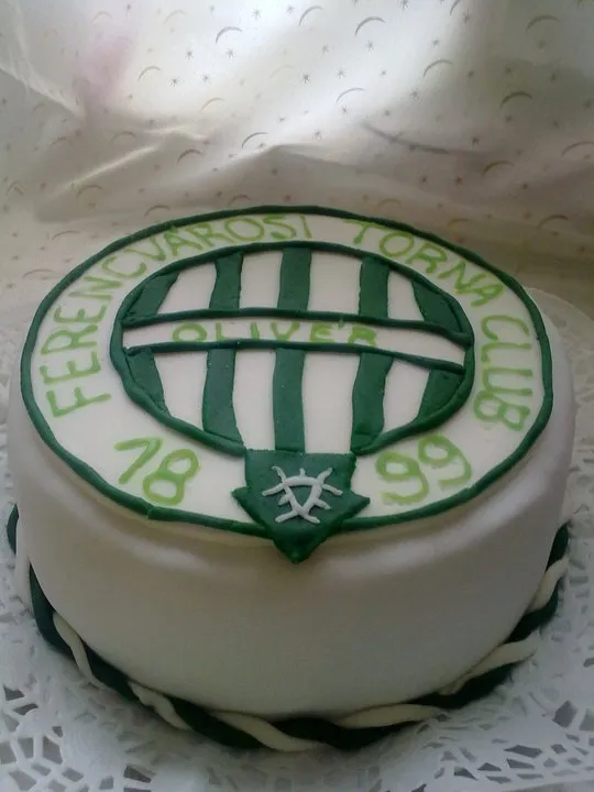 Egy fanatikus rajongó örülhetett ennek a stílusosan zöld-fehér marcipánbevonatba csomagolt tortának. A desszert belseje is férfiasra sikerült, hiszen a krémet némi szeszes itallal dobta fel alkotója, Stift Kata-lin. Nagy sikert aratott!