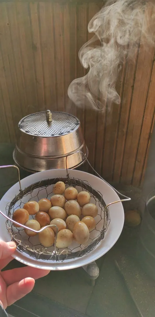 Az idei szezon nagy dobása – legalábbis részéről – mindenképpen az egykori tűzoltó öltözőszekrényből kialakított füstölő, ámbár a paradicsompasszírozóból összeütött fürjtojás füstölő sem semmi! Megint csak kiderült: leleményes nép a magyar!