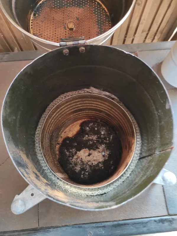 Volt egy régi gázkonvektora – ennek részeiből lett a tojásfüstölő teste és talpa. A cső aljába egy konzerves dobozt tett, ez rejti a parazsat és a fűrészport. A szerkezet tetejére a fészerben talált, használaton kívüli paradicsompasszírozó került, ami praktikus, mert a lyukacsokon keresztül biztosított a megfelelő, visszafogott szellőzés.
