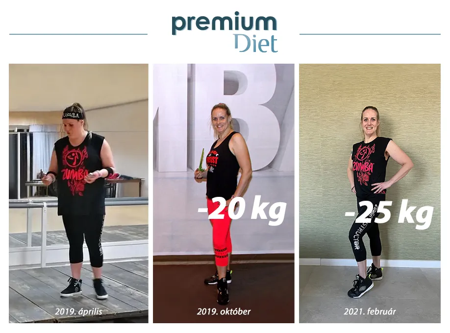 Reumatológus édesanyámmal 10 éve kezdtünk el testsúlycsökkentéssel foglalkozni, ezáltal ismertem meg a Premium Diet orvosi diéta programot. 2019 áprilisában az általunk sikeresen lefogyasztott páciensek példáján megszületett az elhatározásom, hogy orvosi diétába kezdek. A diéta pontos betartása és a rendszeres legalább heti 3x1 óra ZUMBA meghozta az eredményét. 2019 októberére, azaz 5 hónap alatt sikerült 20 kg zsírtól (!) megszabadulnom.