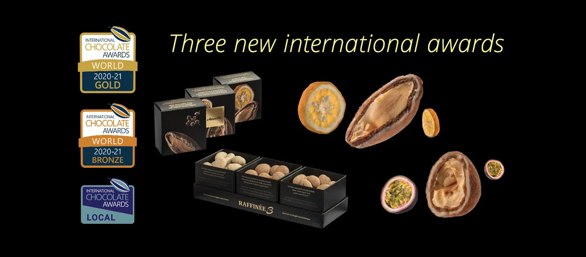 A chocoMe Raffinée 3 nevet viselő, különleges drazséválogatás két íze kiemelkedően szerepelt a rangos megmérettetésen: egy közülük alapanyag-különdíjas is lett. Duplán díjazott aranyérmes az Étcsokoládéval és yuzu couverture-rel bevont szicíliai mandula, amelynek ínyenc étcsokoládéja egyenesen Madagaszkárról származik. Ezt a csokoládékölteményt – többek közt – az egzotikus citrusféle, a yuzu kirobbanó frissessége és leheletnyi parfümössége teszi emlékezetessé. A csokoládé különdíjat is kapott a rendkívül magas minőségű alapanyagok használatáért.