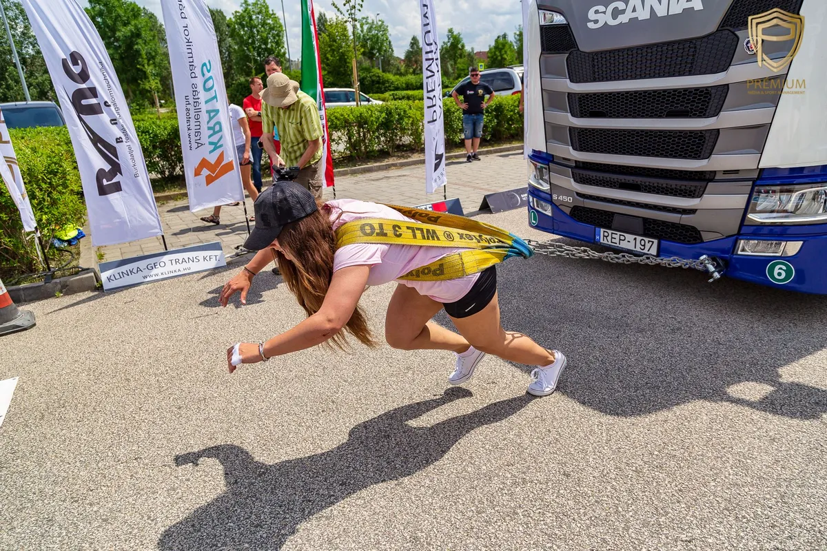 A hatalmas, 8,8 tonnás járművet egy 20 méteres szakaszon kellett elhúznia – ez egészen elképesztő erőkifejtést igényel. „A versenyzőkre egy nagy szakítószilárdságú hámot tesznek, erre erősítik lánccal a vezetőfülkét. Amint elindul a stopper, neki kell feszülni és meg kell próbálni kimozdítani a járművet álló helyzetéből. Én teljes testemmel beledőltem és pokoli erővel feszítettem a lábamat. Úgy éreztem, soha nem indul el az óriási doboz, de aztán csak megmozdult. Többé nem engedtem, hogy megálljon, lassan, de biztosan húztam előre. Örülök, hogy rögtön első alkalommal én bizonyultam a leggyorsabbnak.”-nyilatkozta lapunknak Dorina a verseny után.