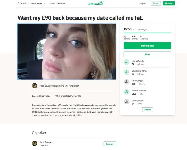 A szörnyű randi után egy vicces GoFundMe oldalt készített, amiben a jegy árára gyűjtött (valamint borra, hogy feledni tudja a megaláztatást). Alig pár óra alatt több, mint 755 fontot gyűjtött.
