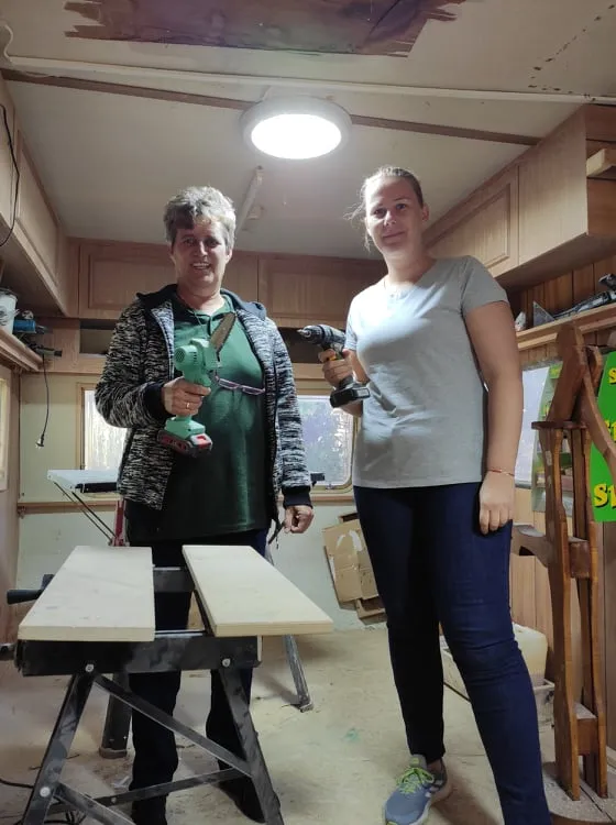 A közös munka pedig a komaasszony műhelyében zajlik, ami nem más, mint egy kiszuperált és átalakított lakókocsi, itt vannak a szerszámok is. Hogy a két hölgy teljes összhangban, oldottan tud együtt alkotni, annak az igen közeli rokoni és baráti kapcsolat is az oka. A komaasszonyként emlegetett lakókocsiműhely-tulajdonos: Tóthné Garai Márta olvasónk fiának a keresztanyja.