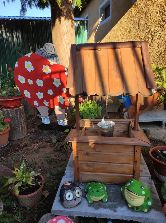 Eddig a kerti törpe volt a sztár a virágágyások között, de ahogy elnézzük Böhönyén élő olvasónk ötletét, most már egész biztosan más a trend. Jön Szicsi néni!