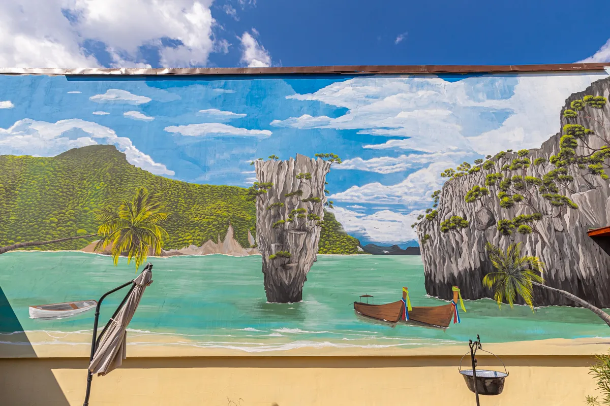 A különleges alkotás Bódi Csabiék új házának kertjében található, és egy csodálatos trópusi tengerparti jelenetet ábrázol. A pálmafás tájképpel Szalay Benjámin csepeli villanyszerelő emelte új dimenzióba a mulatós zenész otthonát