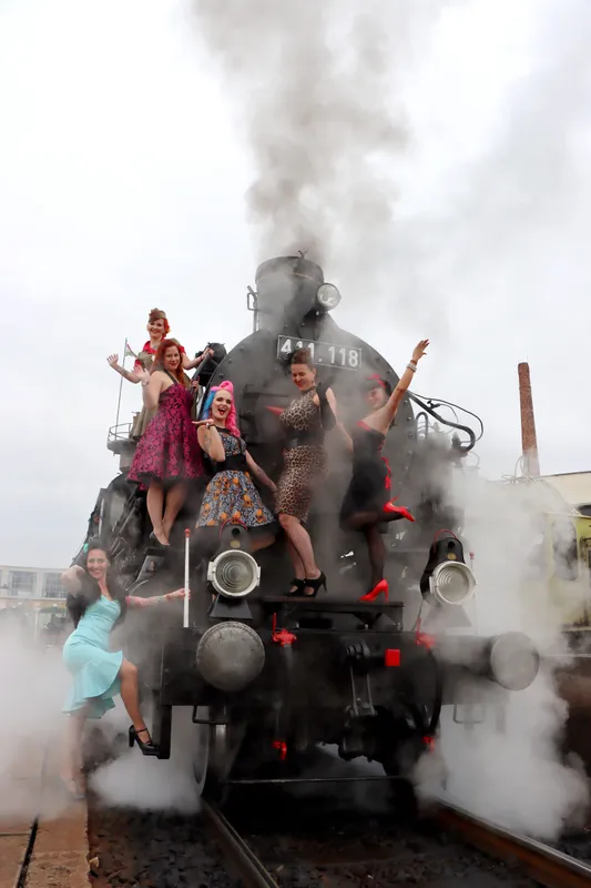 A lányokat ekkor két csapatra osztották: ki az old-timer autókhoz, ki pedig a régi gőzmozdonyhoz vonult fotózásra, azzal, hogy később majd cserélnek.