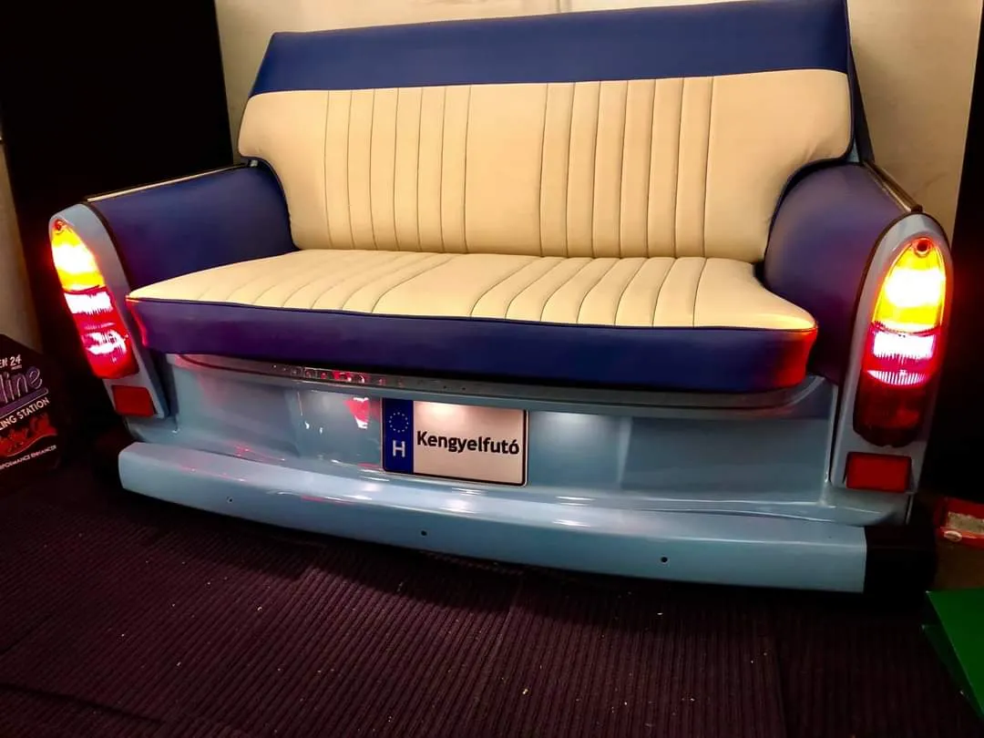 Akadt már dolgom BMW farával, abból például falidísz és monitorállvány kerekedett, méghozzá izgalmas piros alapszínben. Sokan hiszik azt, hogy néhány óra alatt pakolom össze ezeket a dolgokat, ám ez nagy tévedés! Minden egyes lemezdarabot alaposan megtisztítok. Az autóból megmaradó rész szinte ugyanúgy fel van újítva, mint egy OT-s autó. A hiányzó, tönkrement díszítő elemeket szintén be kell szerezni, felújítani. A kész bútorokba világítást is szerelek. Mindig igyekszem a megmaradt autórészletet minél korhűbbre, a belőle kialakított bútort minél praktikusabbra csinálni. Így lett például állítható háttámlája a kanapénak, USB csatlakozója az íróasztali lámpának. Amit festeni, kárpitozni kell, azt viszont profira bízom. A végeredményt nagyon lehúzná egy garázsos, vagy spray-s festés. Szóval hetekig elvagyok az új gyerekkel, nincs összecsapott meló…”