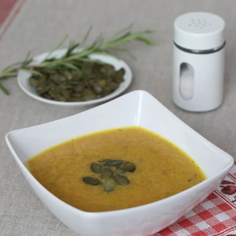 Tálaláskor pirított tökmaggal szórjuk meg a tetejét.
