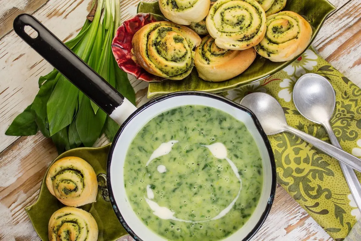 Egy teáskanál vajon dinszteljünk meg egy fej vöröshagymát, két gerezd zúzott fokhagymát és egy csokor apróra vágott medvehagymát, majd öntsük fel az alapot egy liter vízzel. Adjunk hozzá egy nagyobb, kockára vágott krumplit, ízesítsük sóval és borssal. Miután puhára főtt a burgonya, öntsünk a leveshez két deci tejszínt, botmixerrel pürésítsük krémesre, és ha kell, ízesítsük még sóval, borssal. Frissen, forrón tálaljuk.