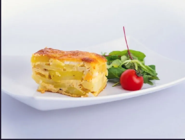 A vajból, a lisztből és a tejből készíts besamelmártás, sóval, borssal, szerecsendióval fűszerezd. Keverj hozzá tejfölt és 3 db tojás sárgáját. Az egészet forgasd egybe a burgonyával és a tojással. A felvert tojásfehérjével lazítsd és kivajazott tepsibe terítsd szét.