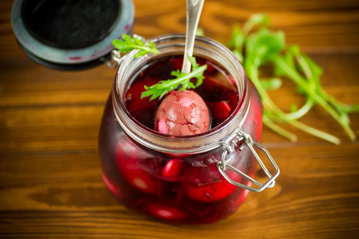 - Keverd össze a savanyú céklalevet a frissen reszelt tormával, majd tedd a tojásokat egy befőttes üvegbe, és öntsd rájuk a levet.