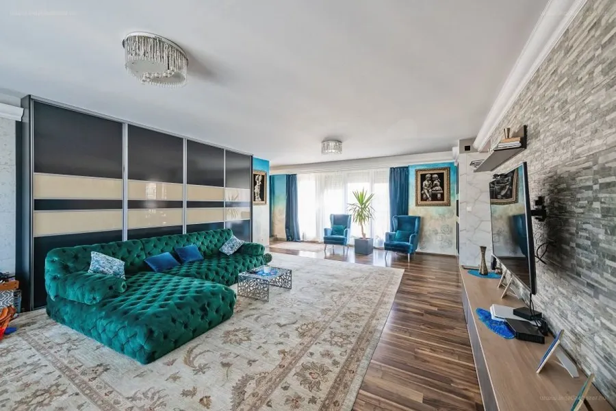 “Eladó a 3. kerületben egy 190m2-es, 4 szobás, PANORÁMÁS, LUXUS lakás a legfelső szinten, saját tetőkerttel! A lakás duplakomfortos, tartozik hozzá egy körbefutó 100m2-es terasz és egy 200m2-es TETŐTERASZ. A lakás nagyon jó elosztásának köszönhetően tágas, világos. A hatalmas 50m2-es nappalit, a konyhát, a szobákat, dupla fürdőszobát körül öleli a 100m2-es terasz. A pakolást a beépített szekrények biztosítják, a kényelmet a klíma, az ablakokon a szúnyoghálós redőnyök és riasztó biztosítja. A konyhában minőségi beépített gépek és bútorok vannak. A lakásból és a tetőteraszról is gyönyörű panorámában gyönyörködhet az új tulajdonos! A lakáshoz 2 db felszíni beálló tartozik melyek ára 1.8M/ 2db A környék közlekedése nagyon jó, a közelben óvoda, iskola (British School), bevásárlási lehetőségek vannak, a belváros is gyorsan elérhető. [...]”