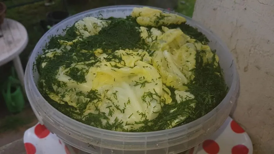 - A levelek tetejére mehet még egy marék kapor, majd a két szelet kenyér. Öntsd fel a vízzel, és tedd egy meleg helyre érni. Legalább 20-25 fokra van szükség ahhoz, hogy beinduljon az érés. Fontos, hogy ne kerüljön tűző napra az üveg, mert akkor megpuhul a káposzta. Kistányérral fedd le az üveget, alá pedig tegyél egy tálat, hiszen akárcsak az uborkánál, a káposztánál is előfordulhat, hogy kifut a lé.