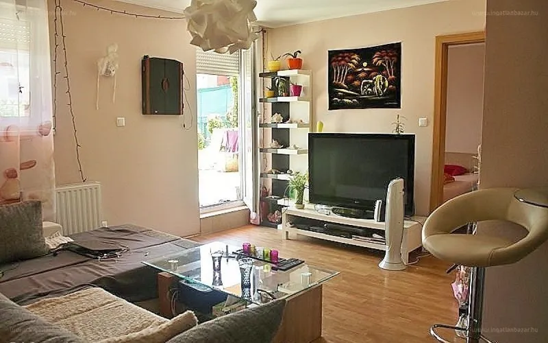 “2007-ben épült lakás eladó a Ciprus házban Népstadion közelében. Saját tetőkerttel rendelkező, 1, 5 szobás . A kert gyönyörűen beültetett (46, 44 nm) + terasz (62 nm), ahova a nappaliból és hálószobából is ki lehet jutni. A lakás déli fekvésű, napos, minden ablakhoz és ajtóhoz alumínium redőny tartozik. A lakás szépen karbantartott állapotú, rövid határidővel költözhető.. Kiváló hő - és hangszigetelés, alacsony rezsi télen is. 24/7 gondnoki szolgálattal rendelkezik. Akadálymentesített az egész épület. [...] A lakásból nyíló saját terasz és tetőkert remekül használható, igazi kuriózummá teszi az ingatlant.[...]”