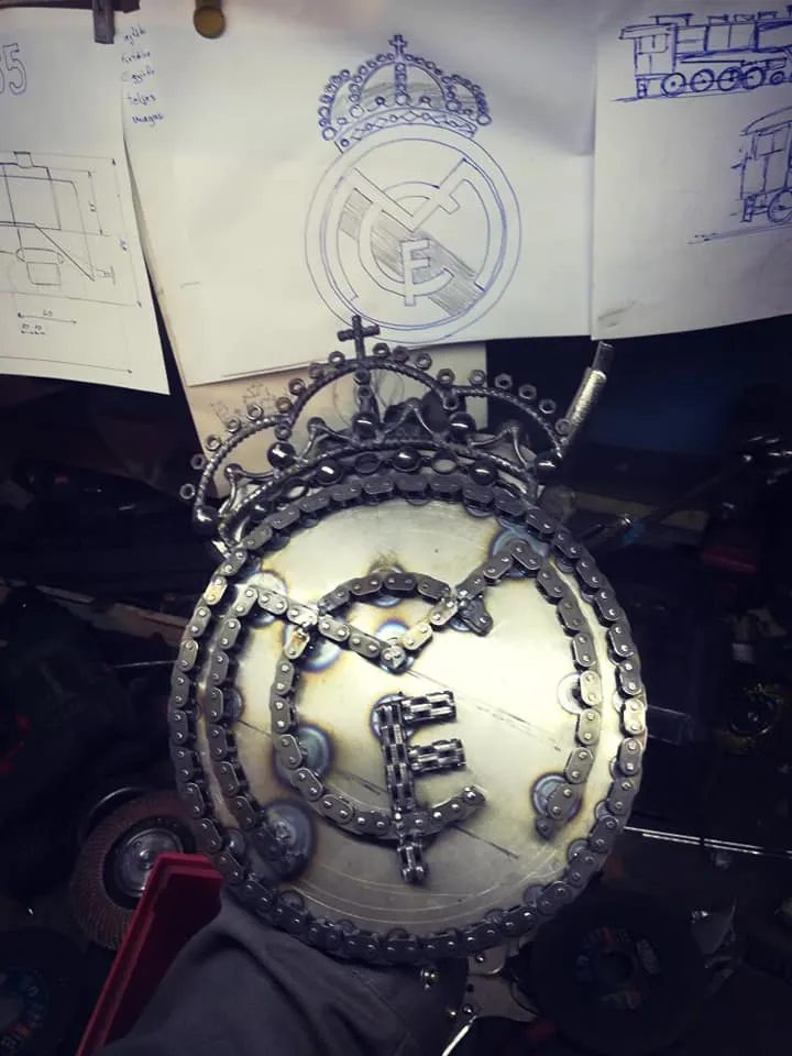Zoltán legutóbbi munkája egy Real Madrid címer, ami egy drukker születésnapjára készült. Egészen izgalmas alapanyagokból állt össze a mű.