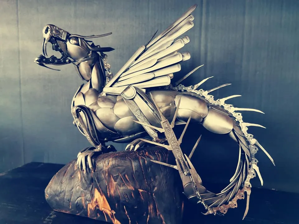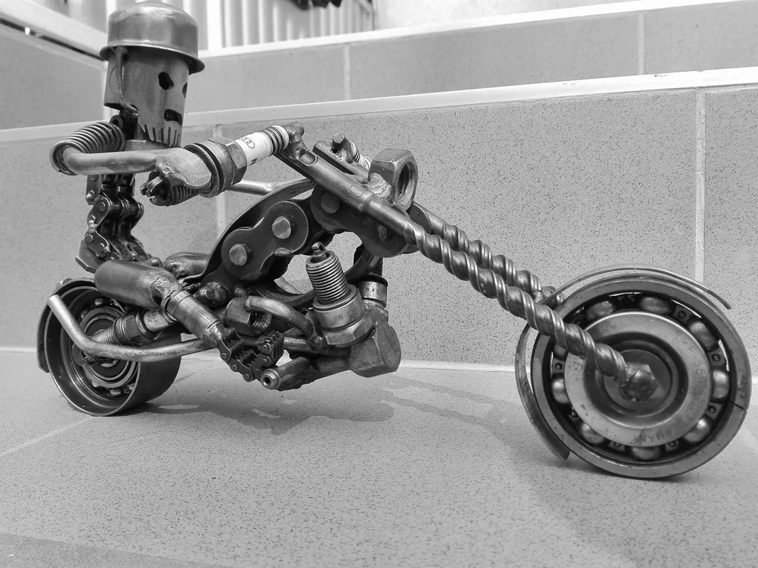 Azóta készít dísztárgyakat, mióta édesapja megtanította hegeszteni. De már korábban is érezni lehetett, hogy ez a fiú tehetséges, tud valamit, amit más nem! „Sok évig próbálkoztam fafaragással, rajzolással, festészettel is, de nem találtam a saját stílusom. Most úgy érzem, hogy égre megérkeztem. Karosszérialakatosnak tanultam, 2 éve pedig letettem az AWI hegesztő vizsgát is. Mindig is szerettem fémmel dolgozni, de a használt alkatrészekből való alkotásra akkor kaptam rá, mikor egy kollégám felmondott, és a műhelyben lévő lim-lomból búcsúajándékként egy motor szobrocskát készítettem neki.