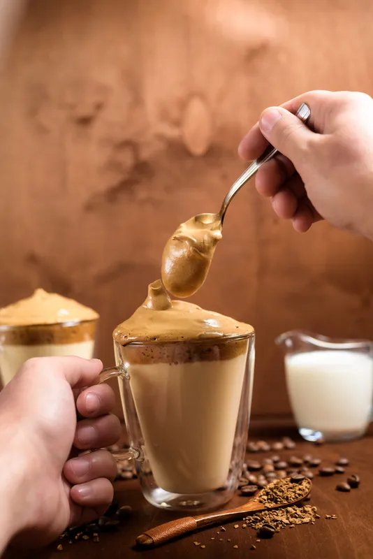 Az őrület Dél-Koreából indult tavaly; a karantén alatt egymás után bukkantak fel a videók erről a habos kávékülönlegességről. Egy koreai híresség indította be a lavinát, amikor egy népszerű műsorban istenítette ezt a kávét. Hamarosan elárasztotta a kávé a közösségi médiát: videók, fényképek tömegét osztották meg a négy fal közé szorult emberek. Míg sok más karantén-őrület a feledésbe merült azóta, a Dalgona kávé szilárdan tartja a pozícióját. Pedig a megszállott kávéfanatikusok húzzák rá az orrukat, hiszen az instant kávé jó aligha lehet; de, ha valami hétköznapi különlegességre vágysz, akkor érdemes elkészíteni. Mindössze egy kis instant kávéra, cukorra, vízre és tejre van szükséged hozzá.