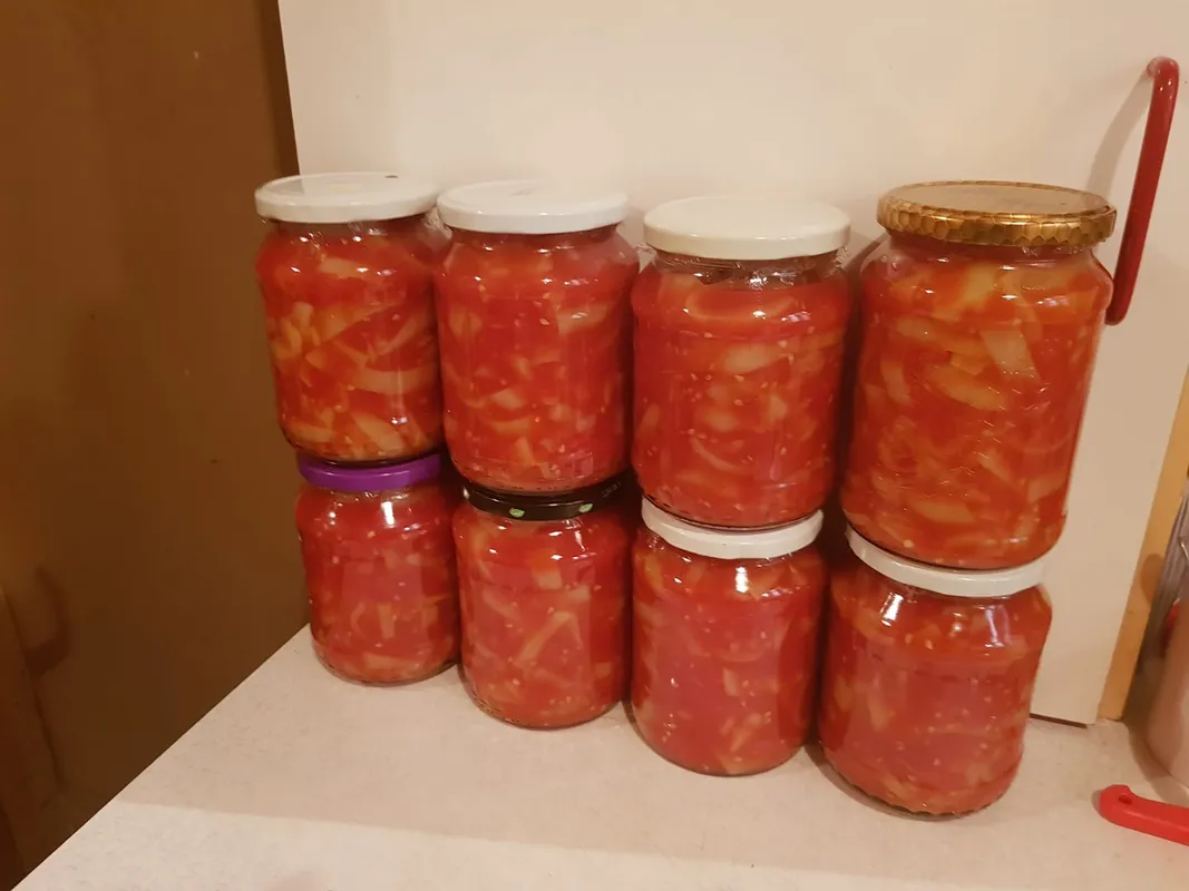 Ez egy igen érdekes megoldás, aminek a végeredménye olyan, mint a boltban kapható üveges lecsó. Itt a lényeg az, hogy nem főzzük meg előre a lecsót; helyette átpasszírozzuk a paradicsomot, és a masszát kezdjük főzni. Ha elfőtt a habja, beledobáljuk a karikákra vágott paprikát, és roppanósra főzzük. Ezután a paprikát üvegekbe szedjük, rákanalazzuk a forró paradicsomot, és a lezárt üvegeket száraz dunsztba tesszük