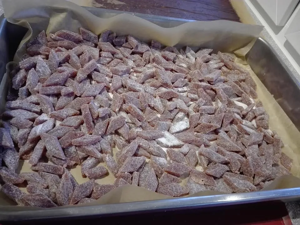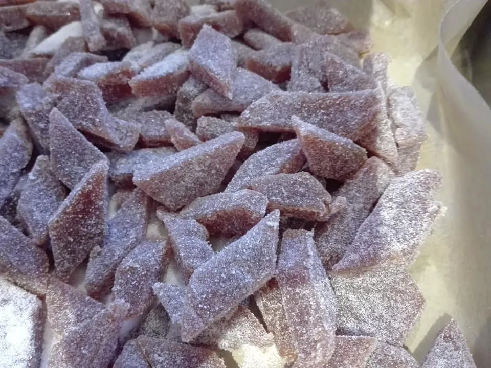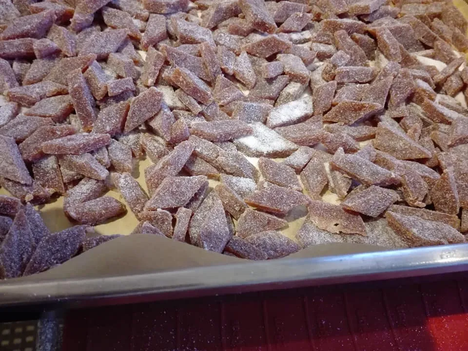 - Végül nincs más teendő, mint feldarabolni az anyagot bonbon méretűre, és a legvégén finom cukorban vagy porcukorban megforgatni.