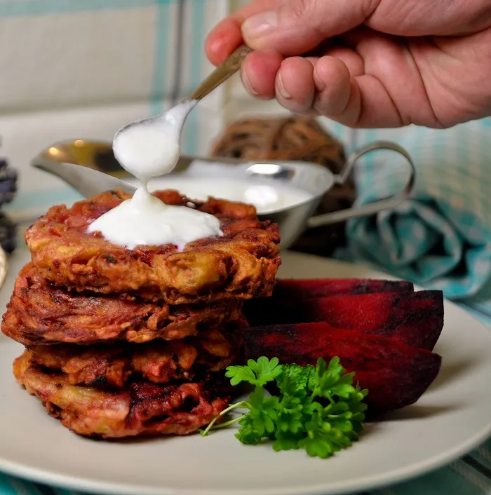 Ha már elsajátítottad az alapreceptet, akkor jöhet a csavar: ezt a tésztát a végtelenségig variálhatod. Például tehetsz a krumpli mellé nyers, reszelt cukkinit vagy céklát is. Vagy megbolondíthatod egy kis reszelt hagymával és fokhagymával. Ha hozzáadsz egy kevés őrölt pirospaprikát, aranysárgára sül. Nem muszáj serpenyőben sütni, teheted sütőpírral bélelt tepsiben a sütőbe is, vagy akár muffinformában is kisütheted.