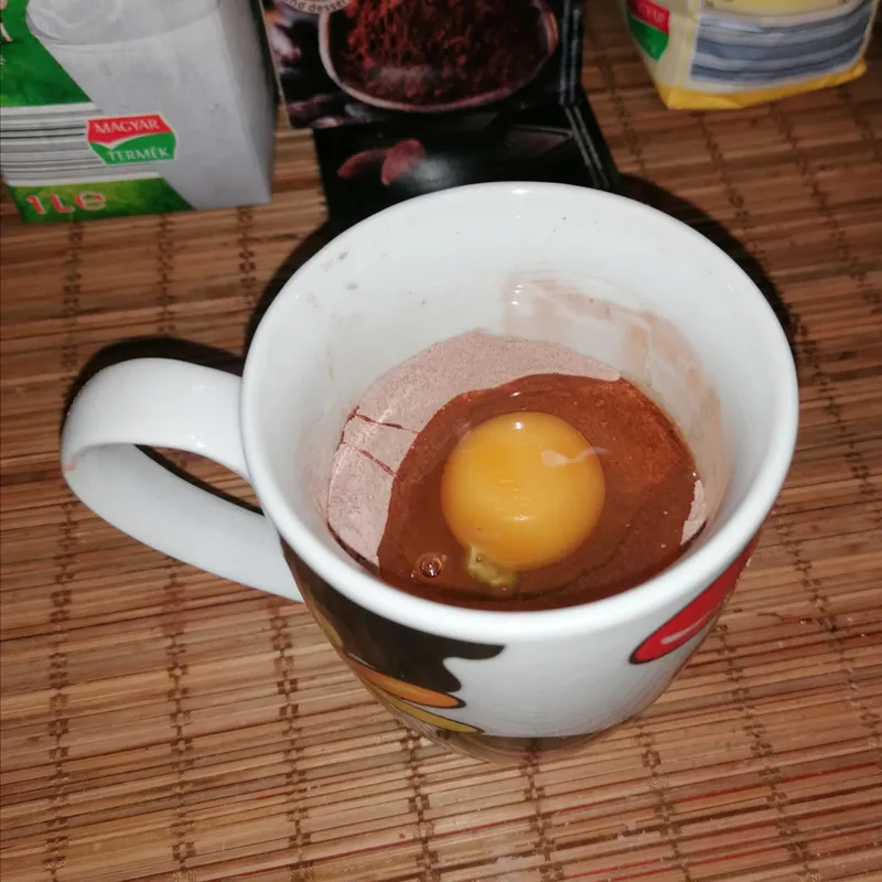 • Kanalazd a bögrébe a lisztet, cukrot, sütőport, kakaóport, és alaposan keverd össze.