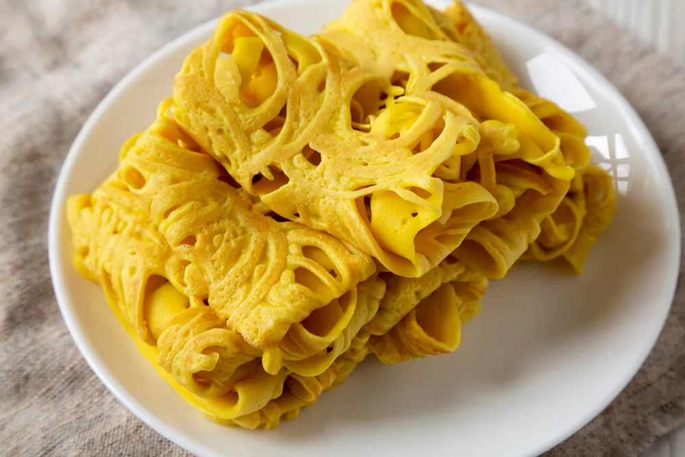 A roti jala eredetileg ”hálós kenyeret” jelent, de tulajdonképpen a mi palacsintákra hasonlít, csak a tésztát kókusztejjel és kurkumával készítik el, hogy különlegesebb ízélményt nyújtson ez a lyukas palacsinta. Önmagában fogyasztva is nagyon ízletes, de nagyon jól illik keleties fűszerezésű húsos vagy zöldséges ragukhoz. Ha viszont nem szeretnél nagy feneket keríteni a dolognak, egyszerűen csak töltsd meg a lyukas palacsinta tésztáját a kedvenc hozzávalóiddal, és már fogyaszthatod is kedvedre.