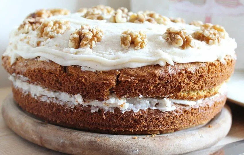 Oszd el egyenlően a répatorta tésztáját a két tortaforma között. Süsd 180 Celsius-fokon 30-35 percig, tűpróbáig. Ezután vedd ki a sütőből, é hagyd hűlni 20-25 percig, csak ezután borítsd ki a tortaformából.