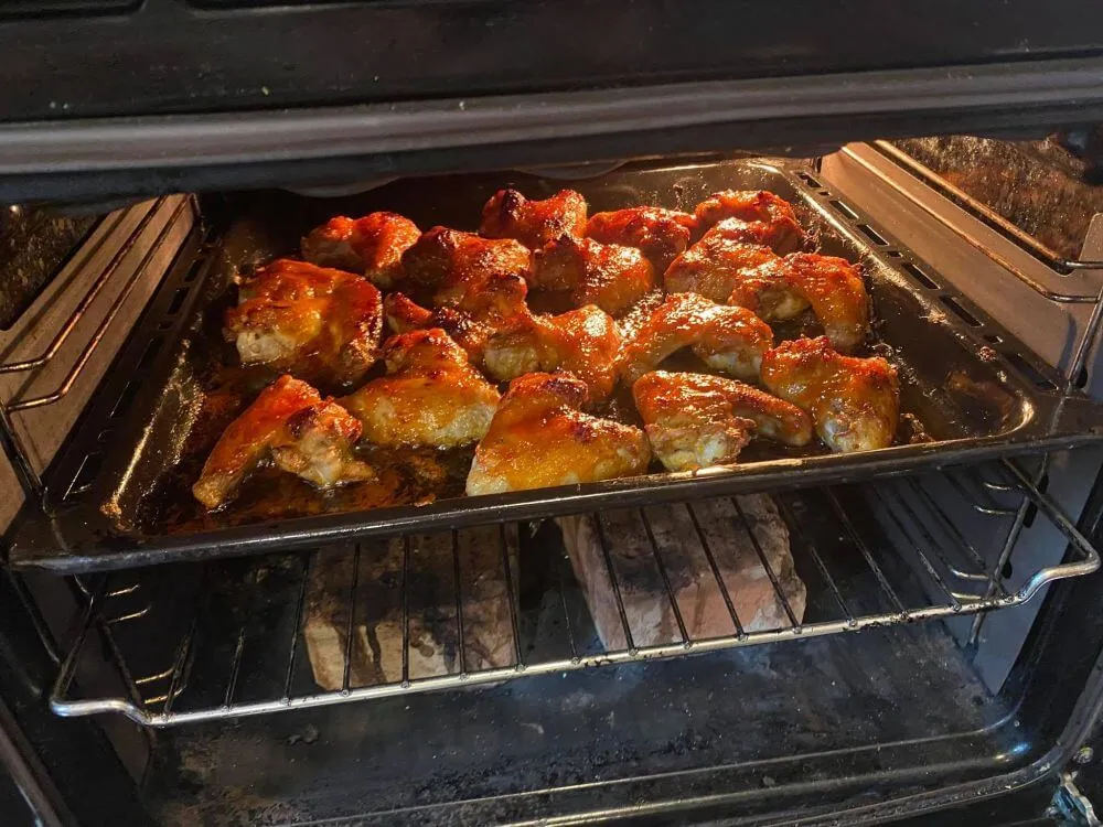 2. Tegyél egy tepsibe rácsos betétet, erre helyezd rá a csirkeszárnyakat. Előmelegített sütőben 220 Celsius-fokon, 50 perc alatt süsd meg úgy, hogy félidőben megfordítod a szárnyakat. Nem kell lefedni a tepsit, a csípős csirkeszárny így lesz igazán ropogós.