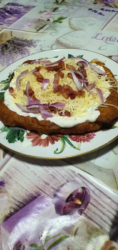 Kedves olvasónk, Rákóczi Zoltánné gyakran süt otthon lángost. Náluk az úgynevezett cigány lángos a nagy kedvenc, ami a sajtos-tejfölös verzió egy tovább fejlesztett változata. A cigány lángos abban különbözik a nagy klasszikustól, hogy sült szalonna és lila hagyma is kerül rá feltétként. A képet beküldő olvasónk erre esküszik, és nyugodtan hihetünk neki, hiszen férje és három kisgyereke hetente legalább egyszer visszatapsolja ezt a finomságot.