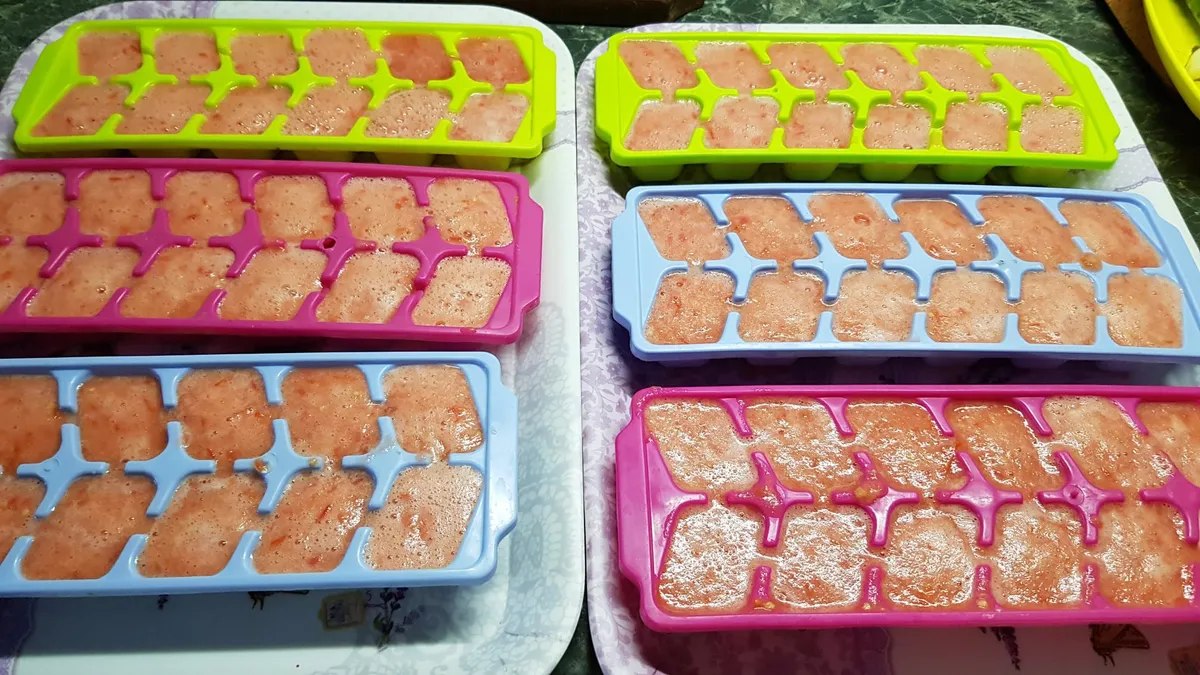 Fogj néhány szilikonos jégkockatartót, és adagold bele a friss paradicsomlevet. Tedd a fagyasztóba, és ha megfagyott, szedd ki a kockákat. Valika külön zacskóban tárolja őket, hogy télen, amikor a levesbe, pörköltbe szeretne tenni, csak ki kelljen kapni egyet. Így kisebb helyet is foglal, és könnyebb kezelni is.