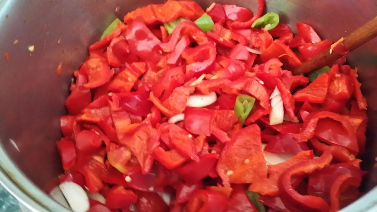Csumázd ki a paprikákat, alaposan tisztítsd meg őket, majd darabold durvára egy nagyobb lábasba. Add hozzá az olajat és a sót.