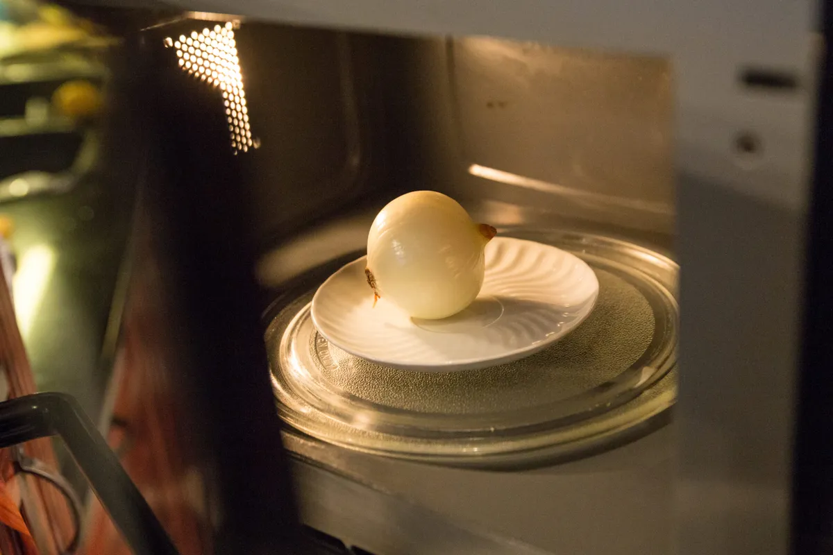 Először pucold és mosd meg a hagymát, majd egy éles késsel vagy hústűvel szúrj bele néhány lyukat. Ezután tedd be a mikróba egy kistányéron.