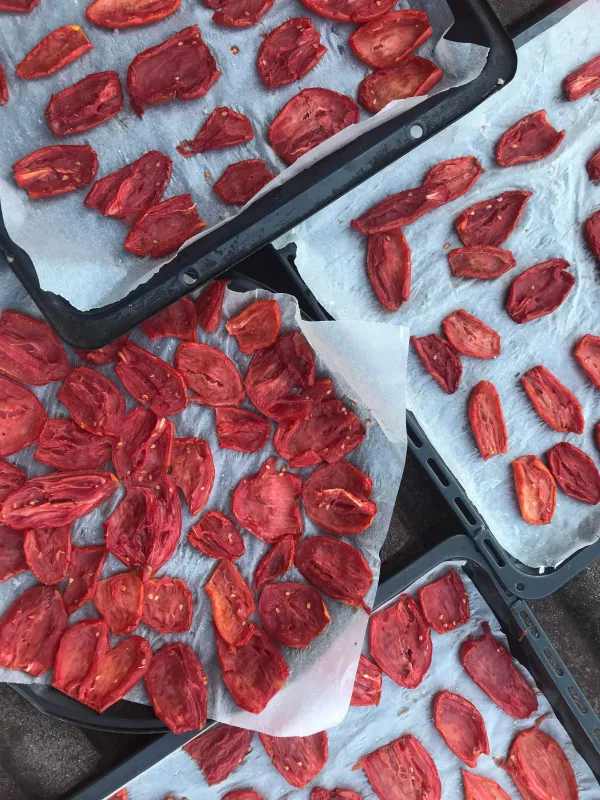 - A tálcákat tedd fel egy lapostetőre, ahol egész nap éri őket a napfény. Bár a bogarak általában nincsenek odáig a paradicsomért, érdemes letakarni őket egy vékony muszlinanyaggal vagy szúnyoghálóval. Hagyd is ott a tálcákat egész napra, de fontos, hogy éjszakára vidd be. A hajnali harmat ugyanis visszanedvesítené.