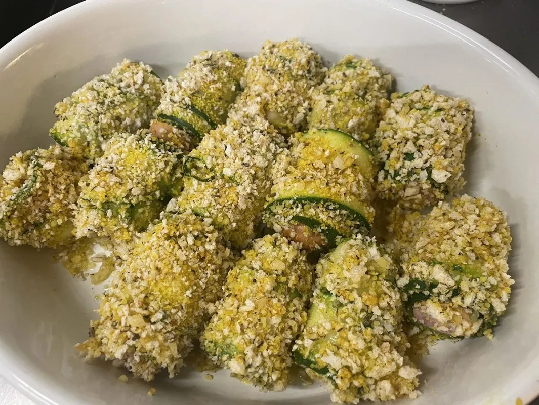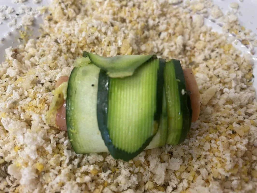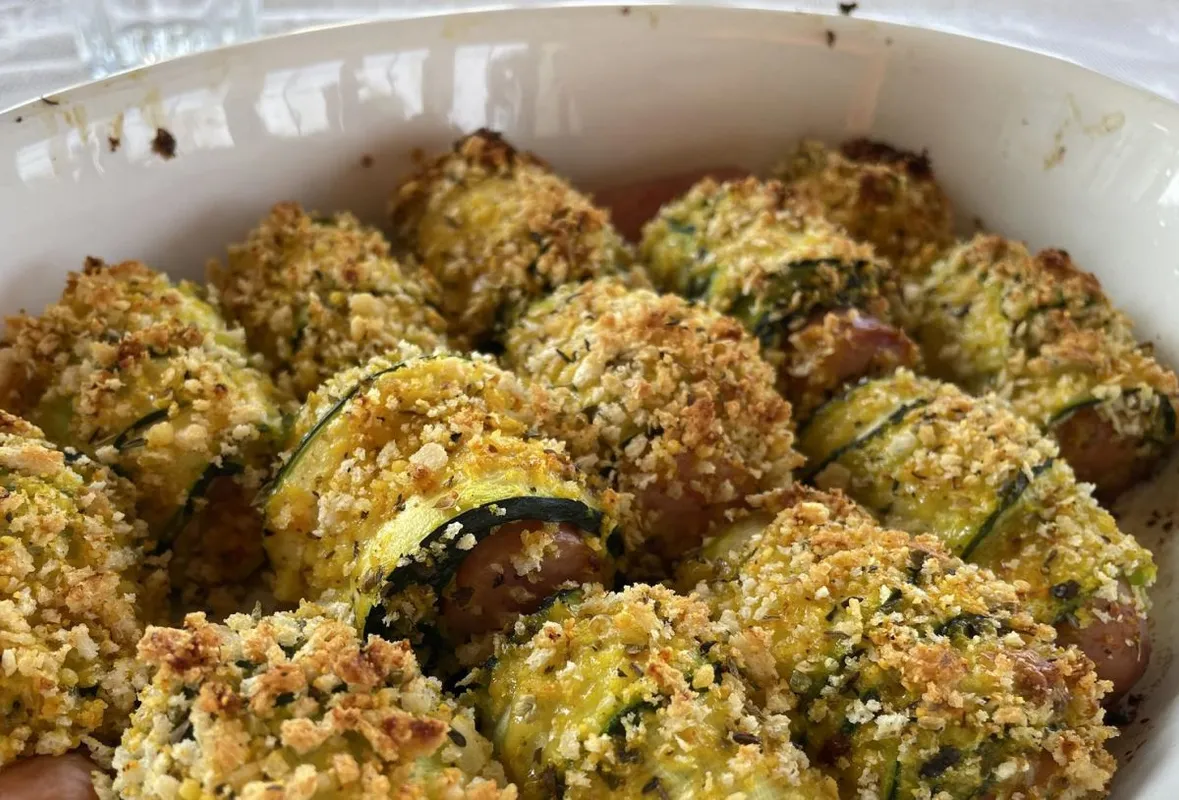 Ha unod a rántott cukkinit, készíts ropogós, kolbászkákkal töltött cukkinitekercset!