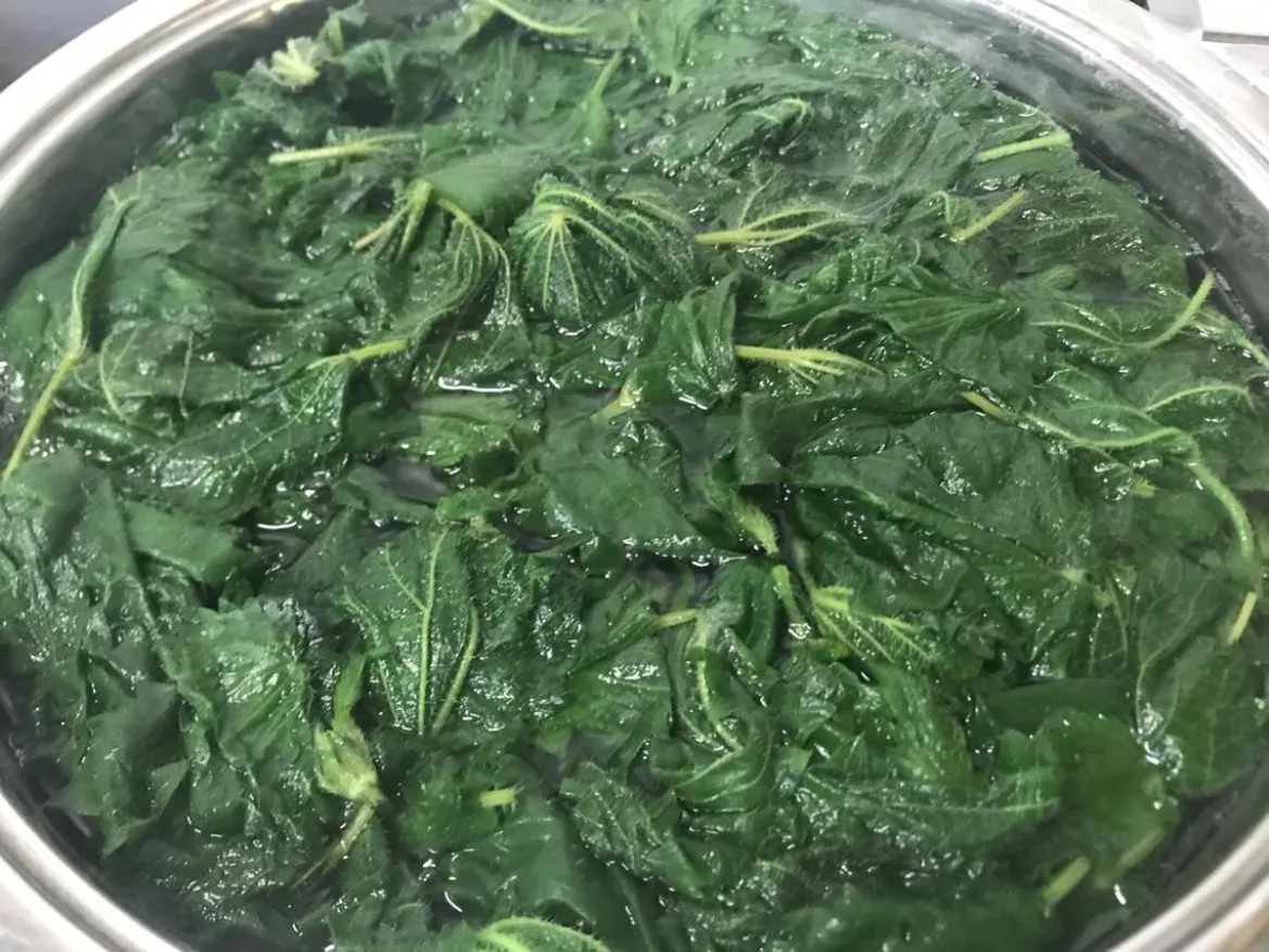 - Alaposan mosd meg a csalánt, majd főzd 1-2 percig sós vízben; ezután szűrd le. Lazán vágd össze a leveleket nagyobb darabokra.