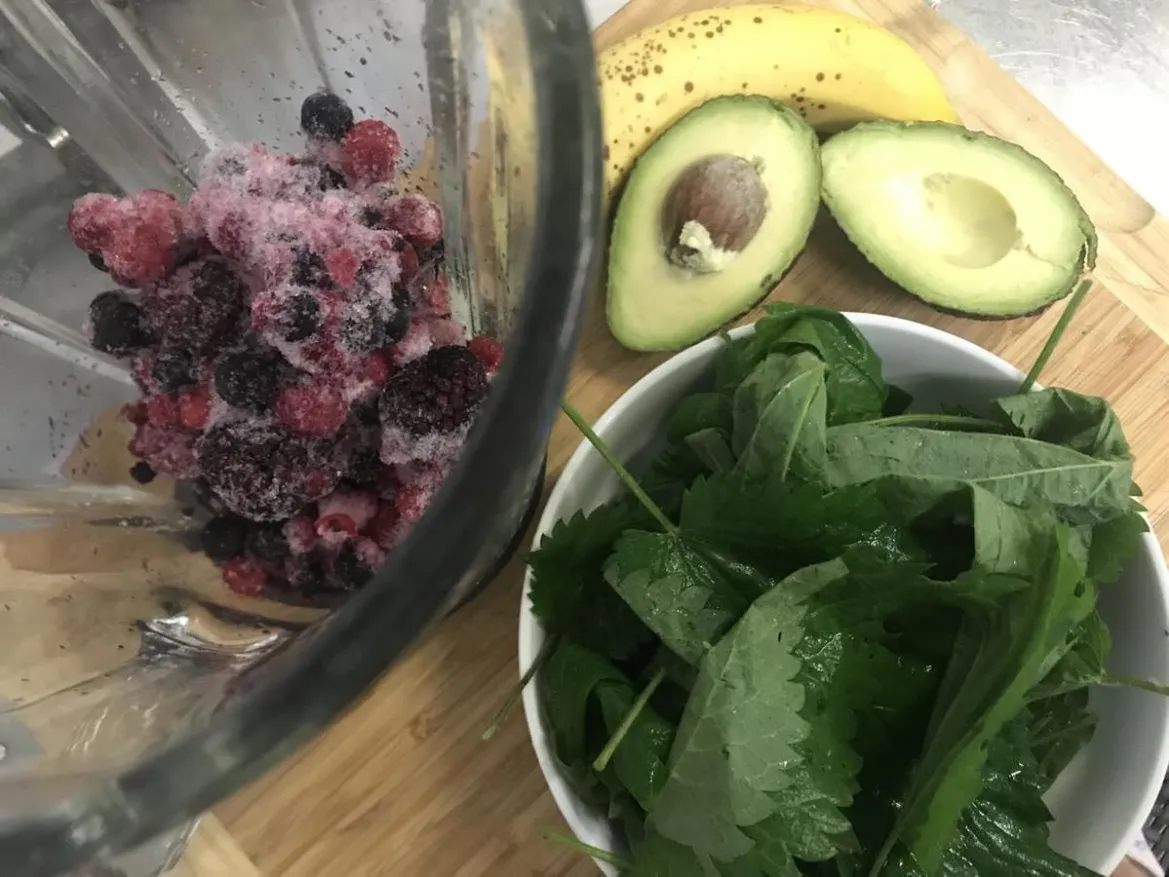 - A csalán kivételével tedd a hozzávalókat a gépbe, adj hozzá egy kevés vizet, és turmixold össze őket. Ezután tedd bele a maradék vizet, a csalánt, és alaposan turmixold össze az egészet.