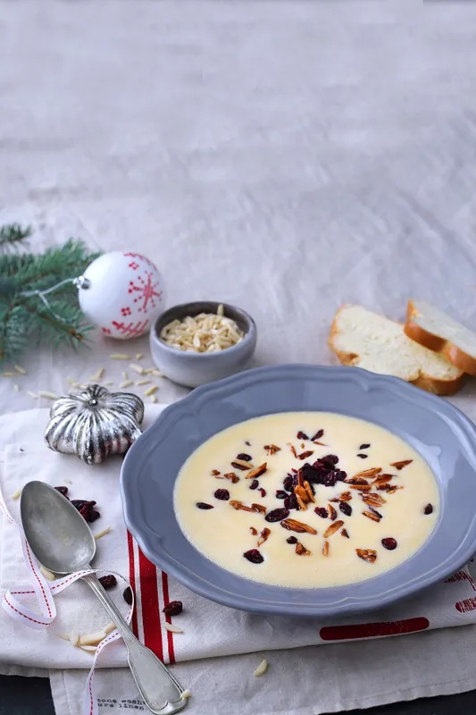 5. Tálaljuk a levest a fahéjas mandulával és az aszalt áfonyával megszórva. Kaláccsal kínálhatjuk.
