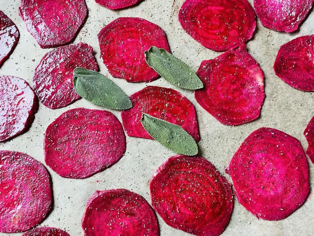 - A céklát mosd meg, pucold meg, és vágd fel nagyon vékony szeletekre. Forgasd meg az olívás keményítőben.