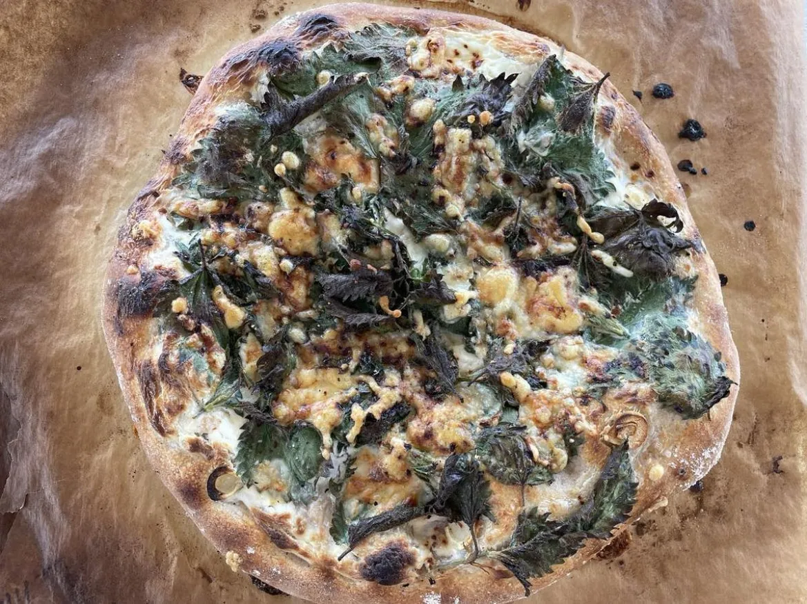 - Lisztezett deszkán nyújtsd kb. egy centi vastagra a tésztát, majd kend meg a csalános-fokhagymás tejföllel. Ezután pakold rá a reszelt sajtot, majd előmelegített sütőben, 220 fokon 10-15 perc alatt süsd készre a pizzát.