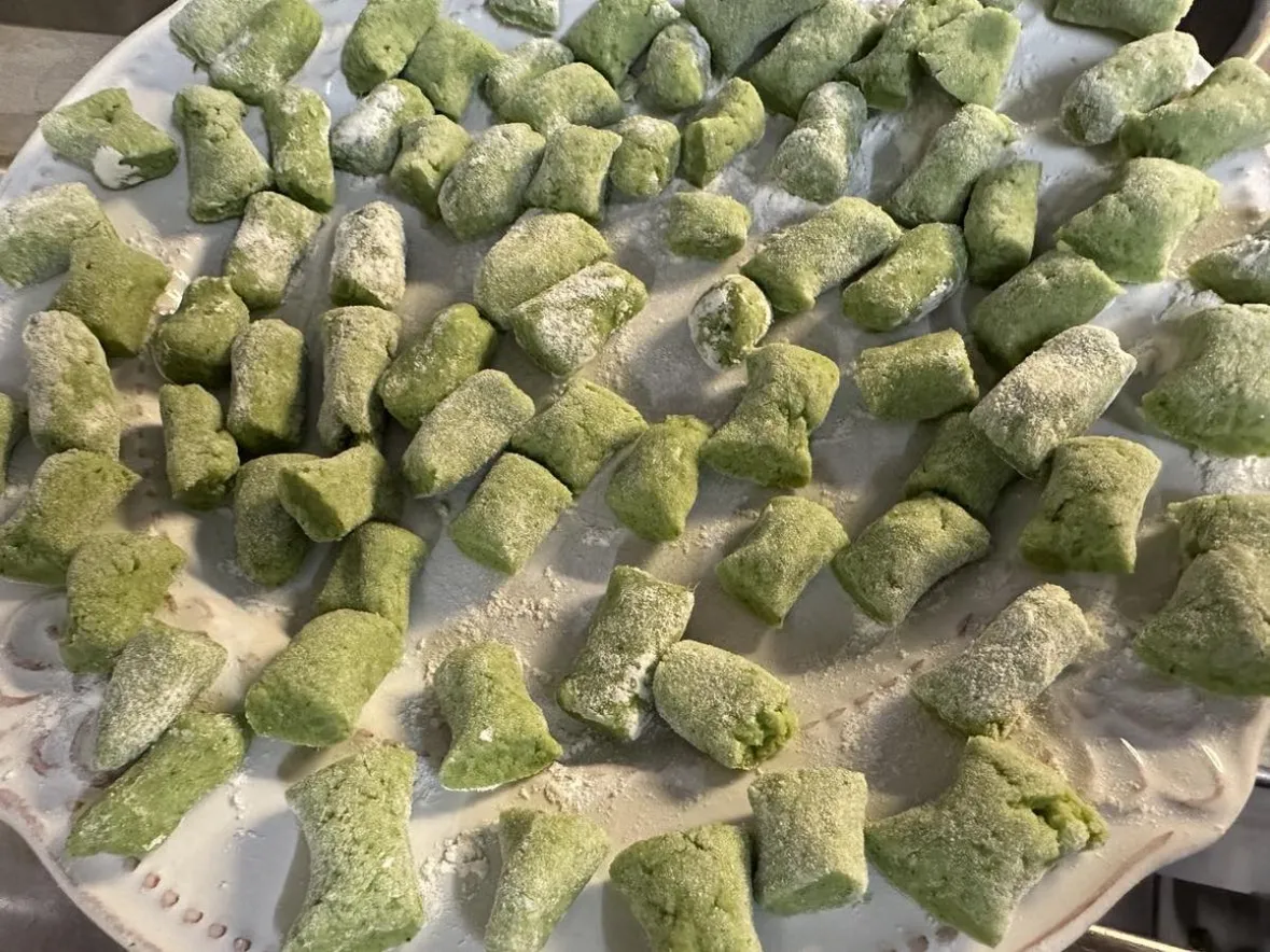 - Főzd meg héjában a krumplit, hagyd kihűlni, majd hámozás után törd át krumplinyomóval. Tedd egy keverőtálba az áttört krumplit, majd add hozzá a lisztet és a tojást. Turmixold a leforrázott csalánlevelet, és add a tésztához. Gyúrd össze a tésztát, ha ragad, adj hozzá még lisztet, hogy rugalmas, jól formázható legyen.