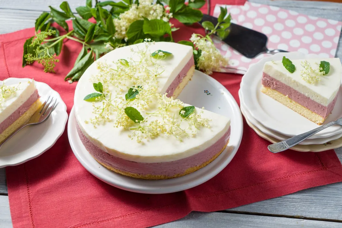 Tálalás előtt díszítsük a tetejét bodzavirággal és mentalevelekkel.